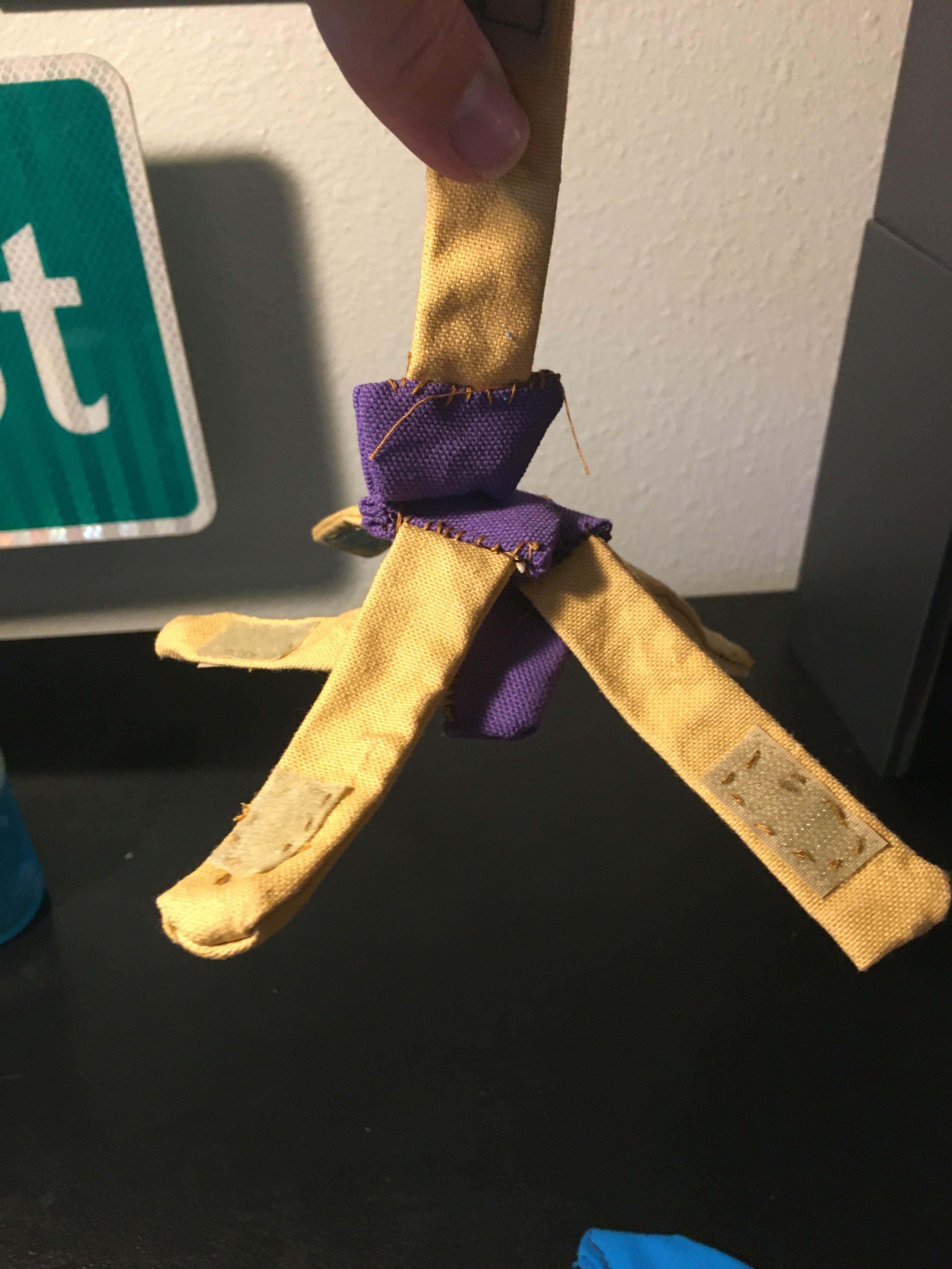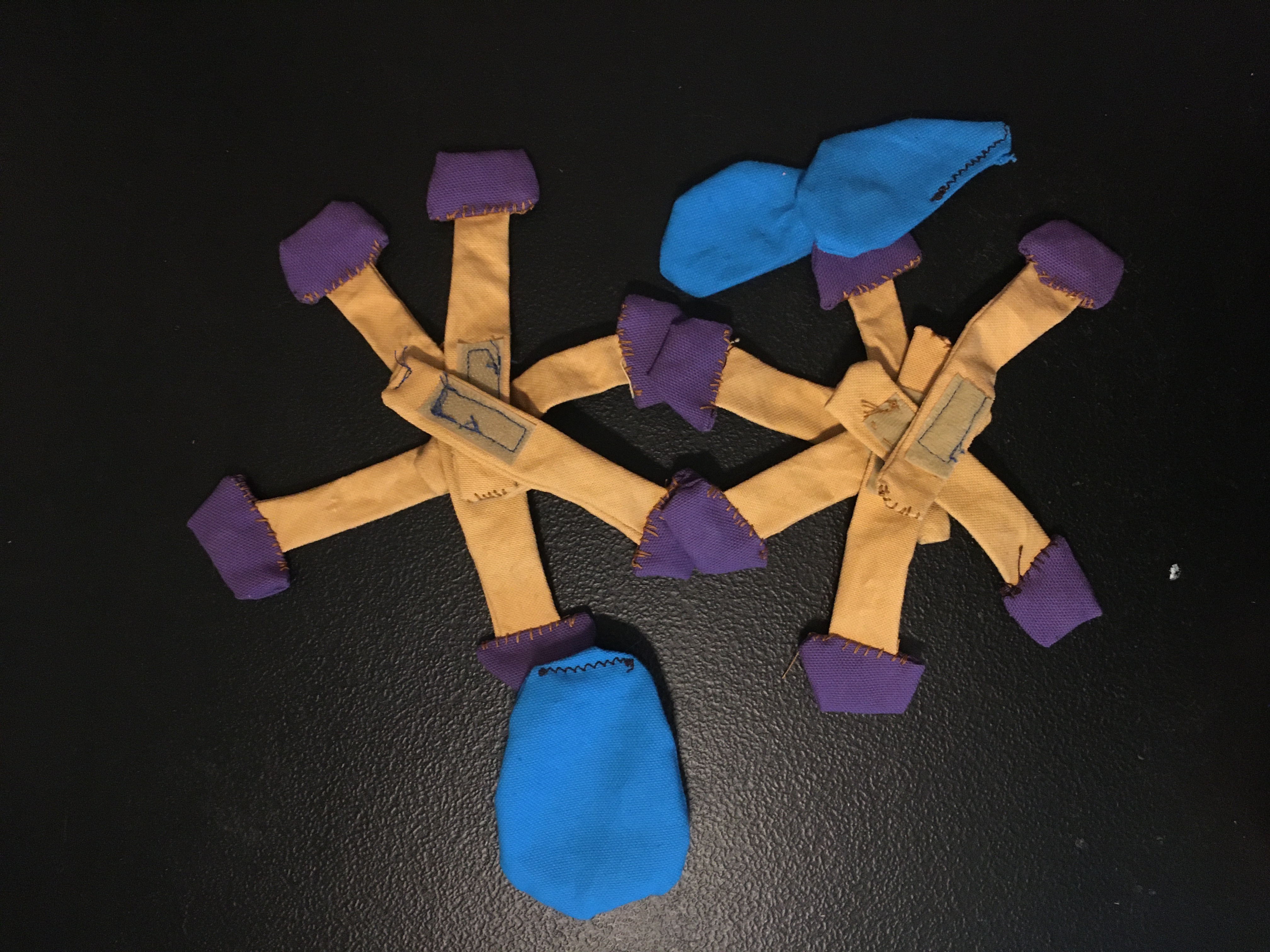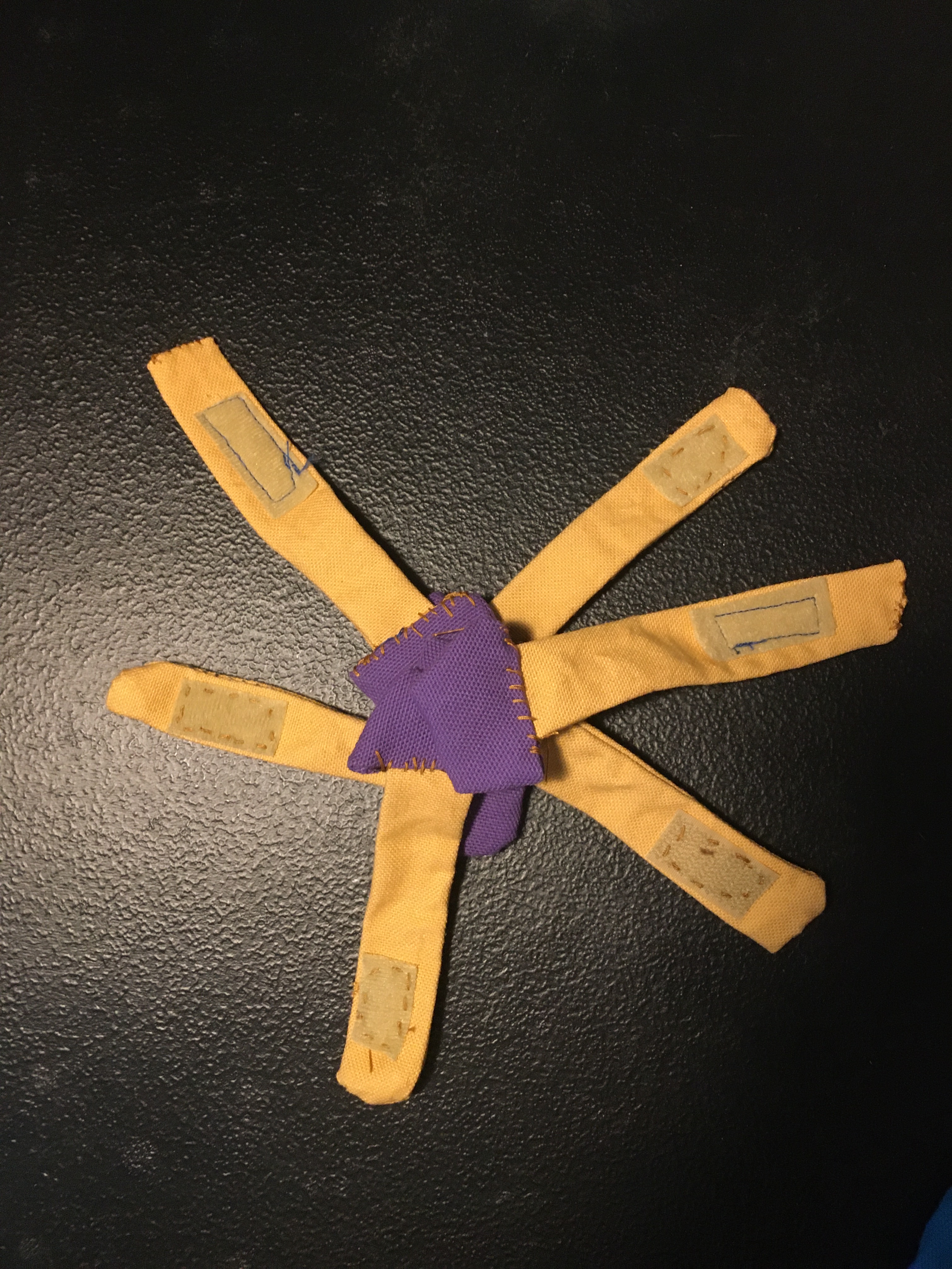 Lipids can self-aggregate in a number of ways depending on their surroundings; they have polar ends that interact with water, and long carbon tails that do not interact with water. To demonstrate the behavior of lipids, I made model lipids with magnetic “heads” and velcro “tails.” I also made magnetic water droplets to demonstrate how the different ends of lipids behave. Once visitors had played with the molecules and figured out how they interacted with each other and water, I would ask them to form their own hypothesis for how lipids could make soil hydrophobic. (See photo gallery below. Purple = lipid head groups, yellow = lipid tails.)